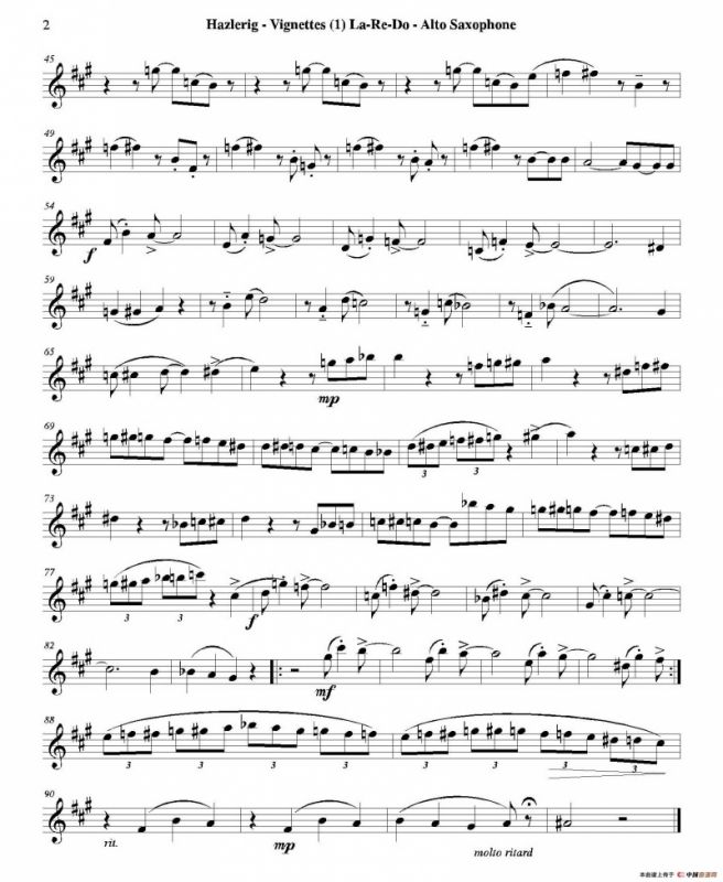 Three jazz vignettes萨克斯谱(第二乐章)(三重奏中音萨克斯分谱),Three jazz vignettes(第二乐章)萨克斯简谱"