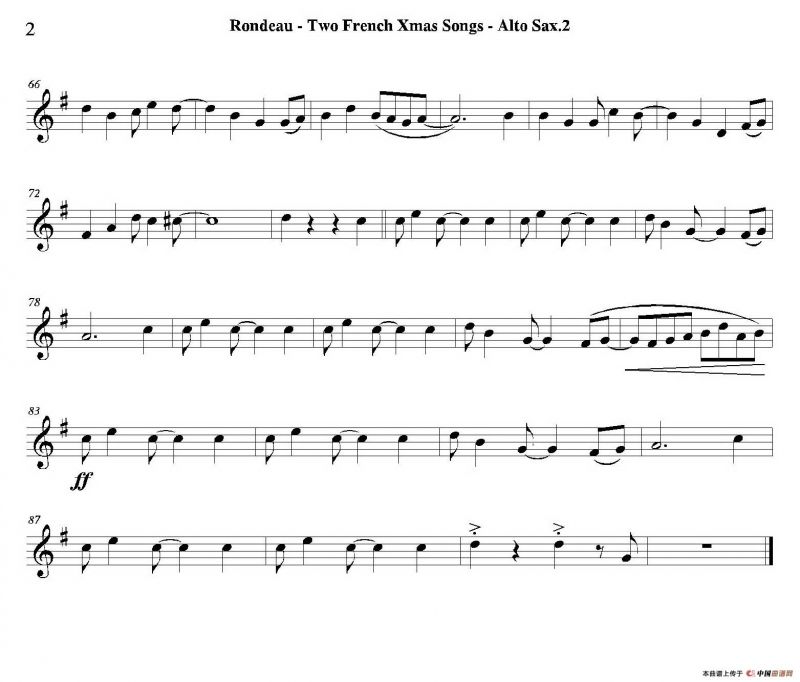 Two French Xmas Songs萨克斯谱(第二次中音萨克斯分谱),Two French Xmas Songs萨克斯简谱"