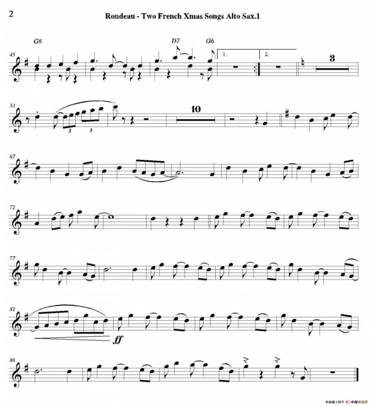 Two French Xmas Songs萨克斯谱(第一中音萨克斯分谱),Two French Xmas Songs萨克斯简谱"