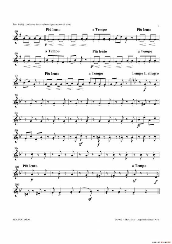 Ungarische Tnze No 5萨克斯谱(十五重奏?Ten.1-2-3?分谱),Ungarische Tnze No 5萨克斯简谱"