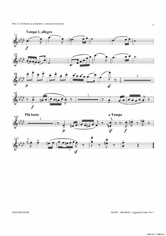 Ungarische Tnze No 5萨克斯谱(十五重奏Perc.1-2-3-4-5?分谱),Ungarische Tnze No 5萨克斯简谱"
