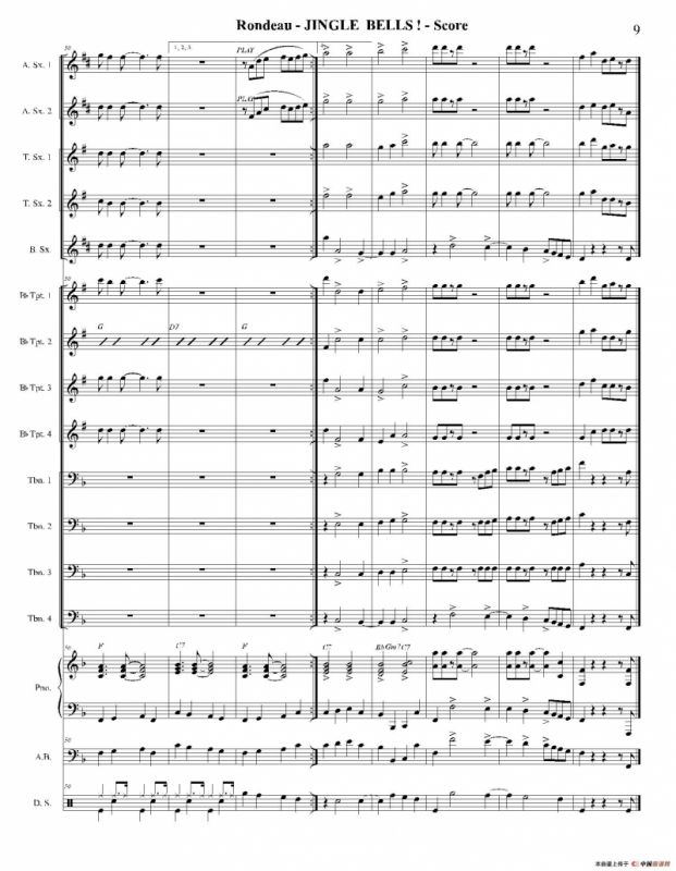JINGLE BELLS!萨克斯谱(第一次中音萨克斯分谱),JINGLE BELLS!萨克斯简谱"