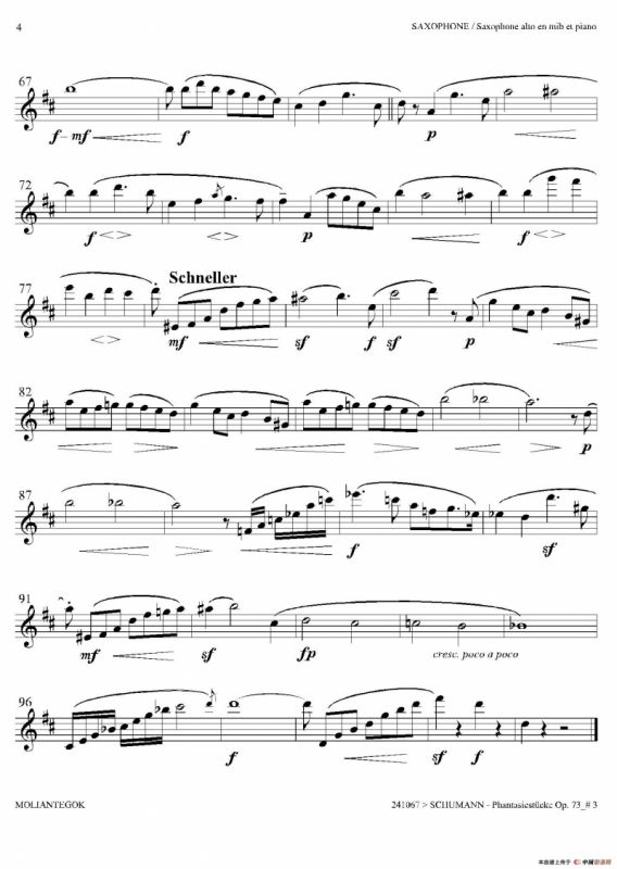 舒曼幻想曲三首 Op73萨克斯谱(Ⅲ),舒曼幻想曲三首 Op73萨克斯简谱"