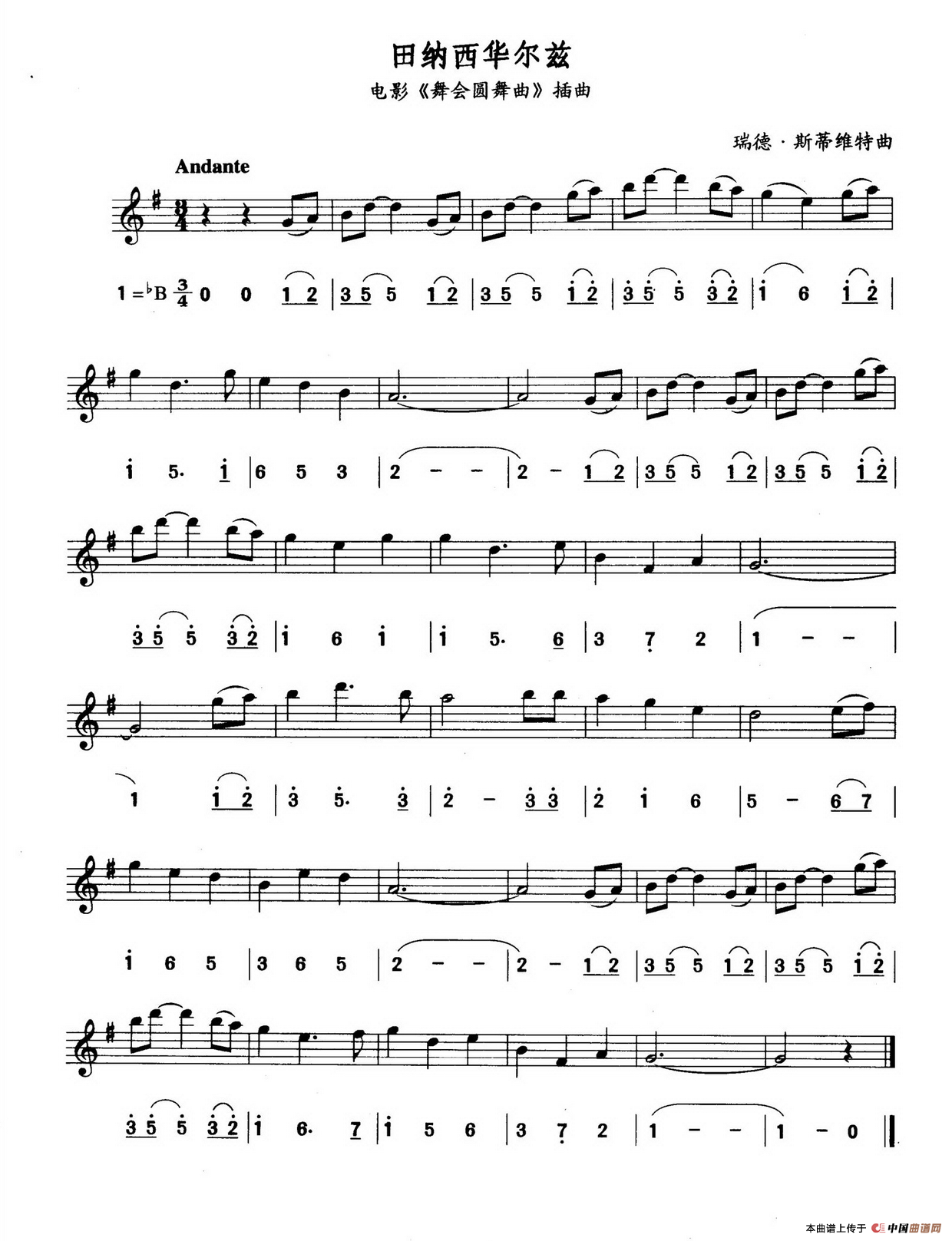 田纳西华尔兹萨克斯谱(线简谱对照版),田纳西华尔兹萨克斯简谱"