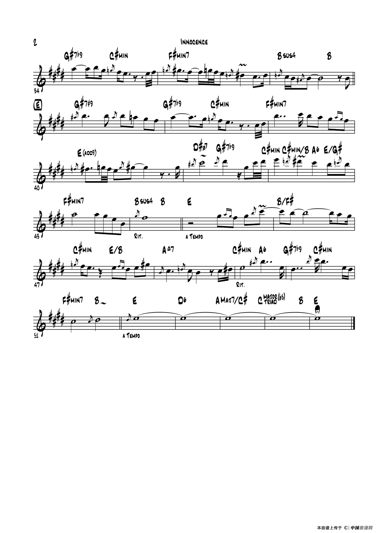 Innocence萨克斯谱(中音萨克斯\上低音萨克斯),Innocence萨克斯简谱"
