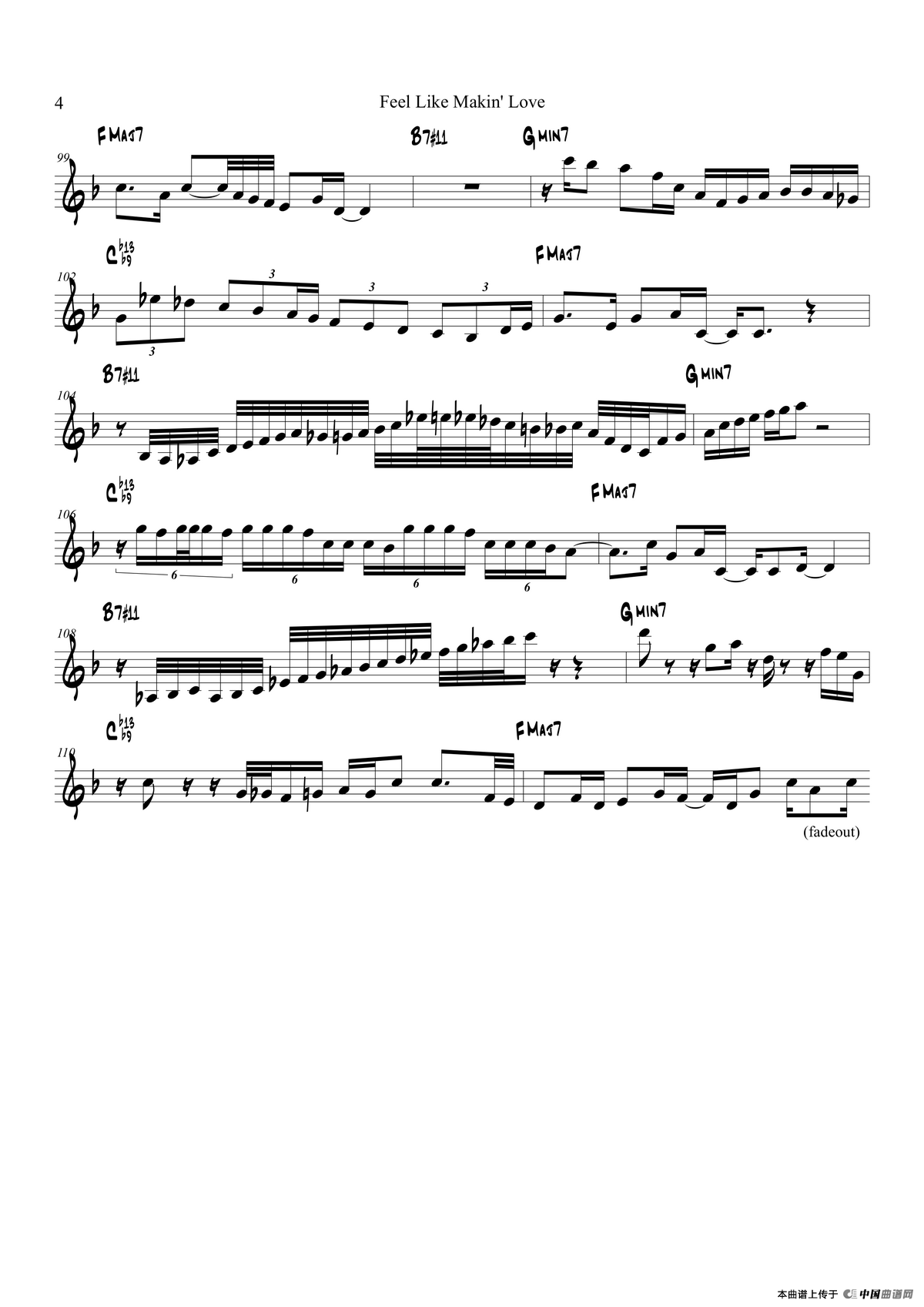 Feel Like Makin Love萨克斯谱(Trumpet in Bb),Feel Like Makin Love萨克斯简谱"