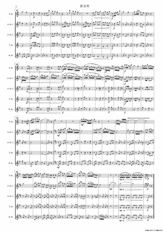 窗花舞萨克斯谱(五重奏总谱),窗花舞萨克斯简谱"