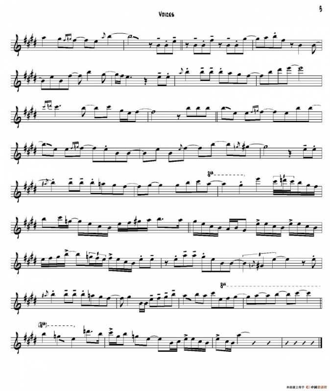 Voices萨克斯谱(中音萨克斯),Voices萨克斯简谱"