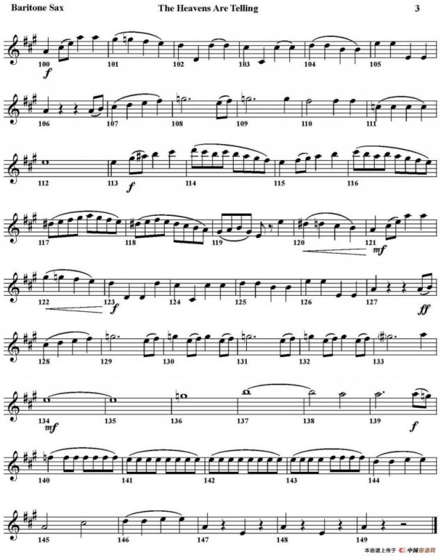 THE HEAVENS ARE TELLING萨克斯谱(四重奏·次中音萨克斯分谱),THE HEAVENS ARE TELLING萨克斯简谱"