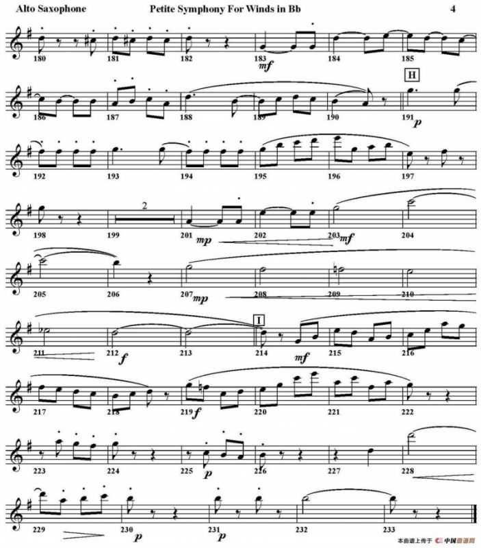 Petite Symphony For Winds in Bb萨克斯谱(四重奏·中音萨克斯分谱),Petite Symphony For Winds in Bb萨克斯简谱"
