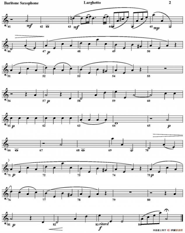 LARGHETTO萨克斯谱(四重奏·次中音萨克斯分谱),LARGHETTO萨克斯简谱"