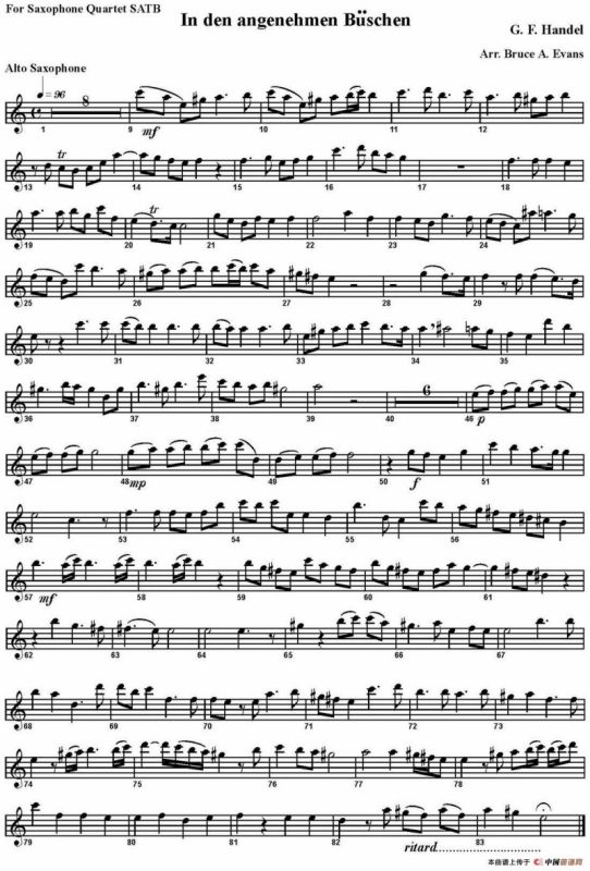 In den angenehmen Buschen萨克斯谱(四重奏·中音萨克斯分谱),In den angenehmen Buschen萨克斯简谱"