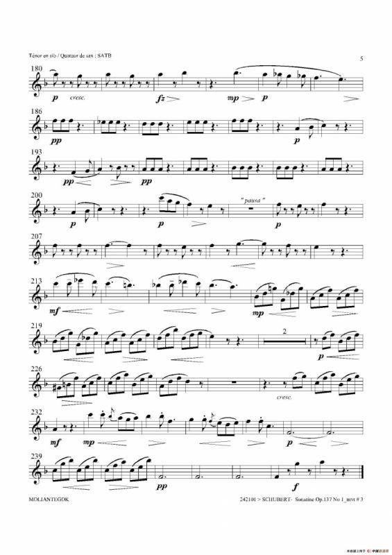 Sonatine Op.137 No 1萨克斯谱(四重奏中音萨克斯分谱),Sonatine Op.137 No 1萨克斯简谱"