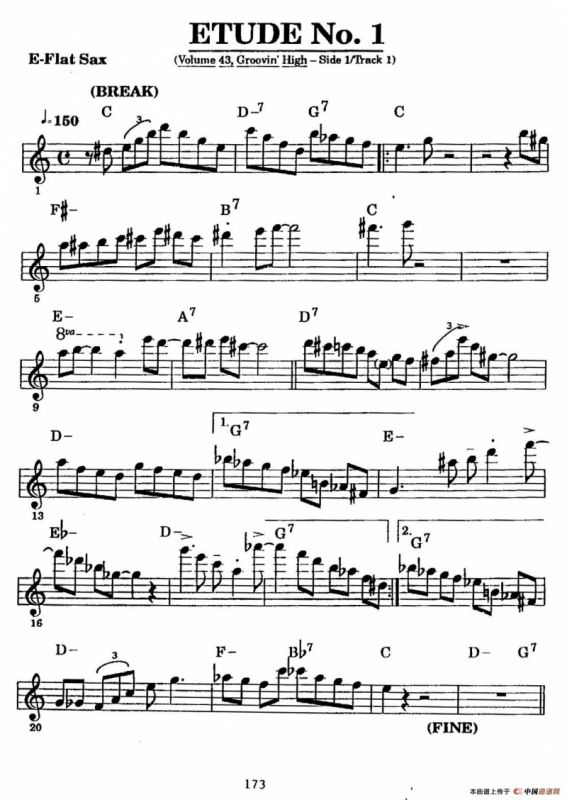 ETUDE No.1萨克斯谱(中音萨克斯超吹练习曲),ETUDE No.1萨克斯简谱"