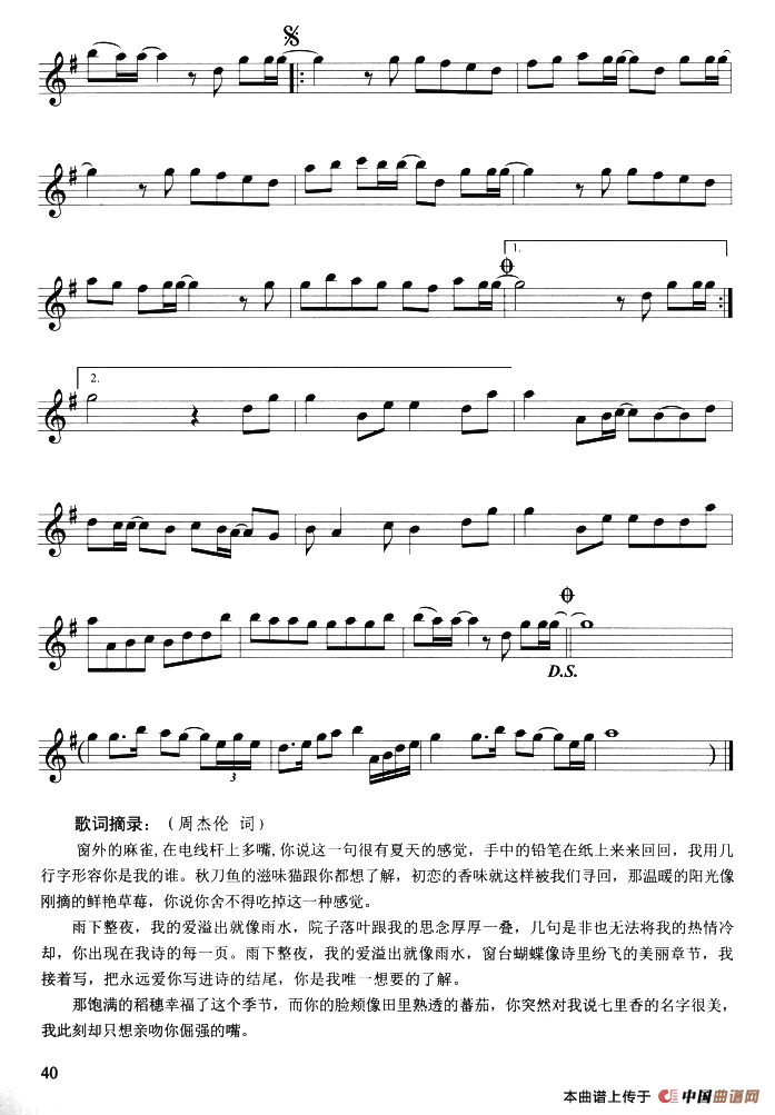 七里香萨克斯谱,七里香萨克斯简谱"
