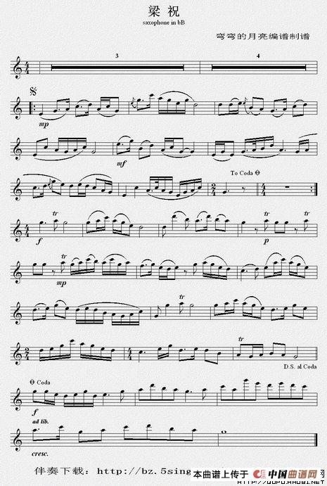 梁祝萨克斯谱(3个版本),梁祝萨克斯简谱"
