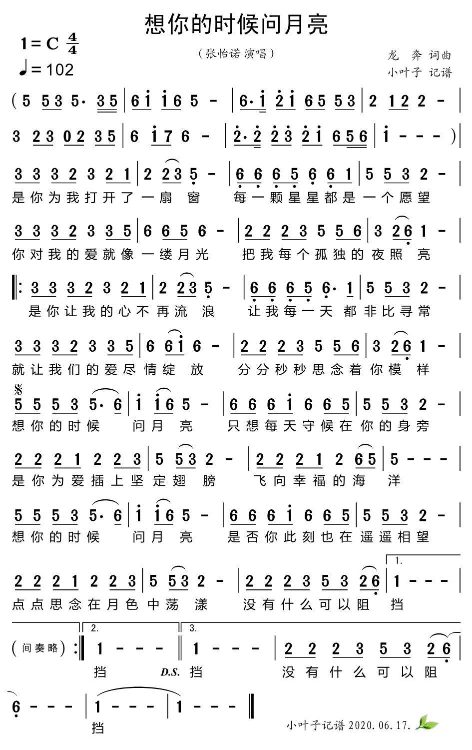 想你的时候问月亮简谱"