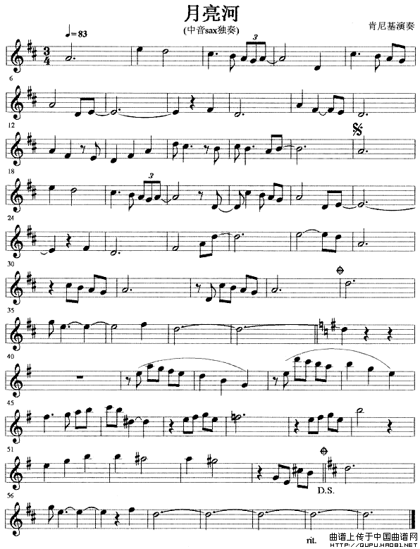 月亮河萨克斯谱(中音),月亮河萨克斯简谱"
