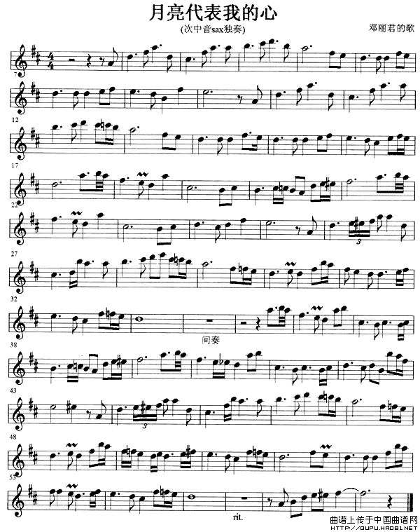 月亮代表我的心萨克斯谱(次中音),月亮代表我的心萨克斯简谱"