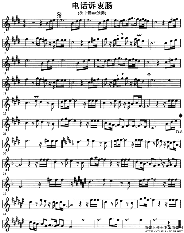 电话诉衷肠萨克斯谱,电话诉衷肠萨克斯简谱"