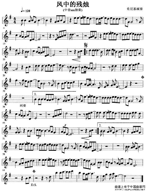 风中的残烛萨克斯谱,风中的残烛萨克斯简谱"
