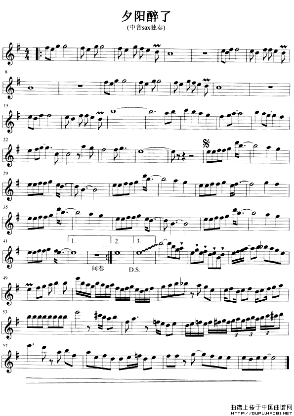 夕阳醉了萨克斯谱(中音Sax独奏),夕阳醉了萨克斯简谱"