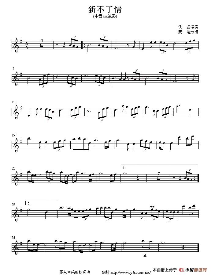 新不了情萨克斯谱(次中音、中音Sax2个版本),新不了情萨克斯简谱"
