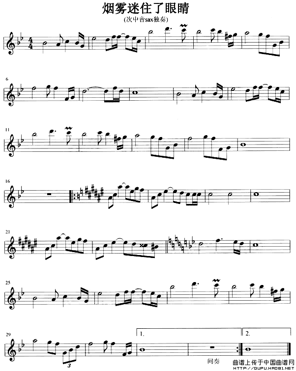 烟雾迷住了眼睛萨克斯谱,烟雾迷住了眼睛萨克斯简谱"
