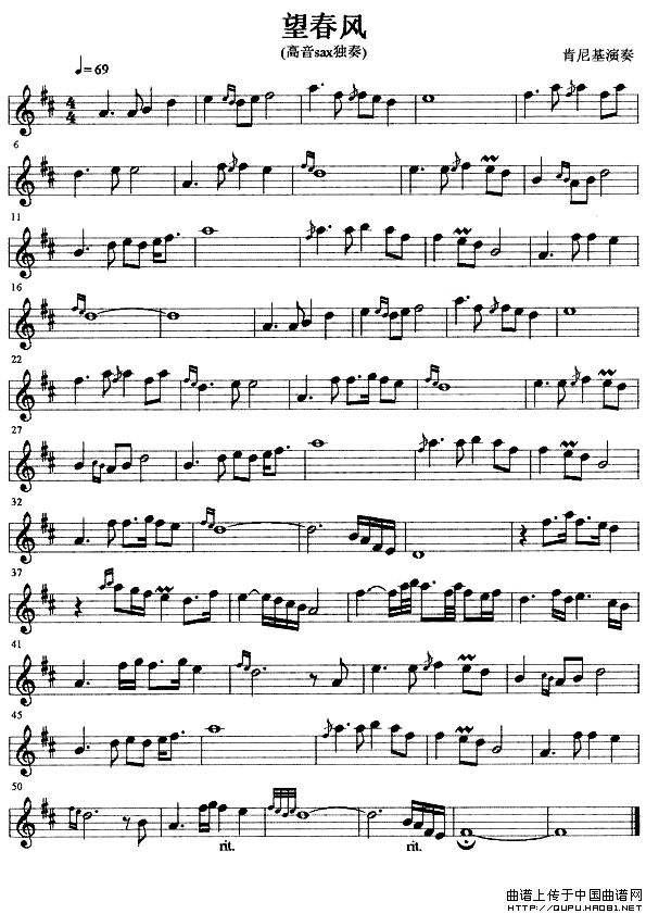 望春风萨克斯谱(肯尼基演奏版),望春风萨克斯简谱"