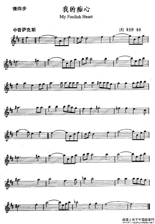 我的痴心萨克斯谱(My Foolish Heart),我的痴心萨克斯简谱"