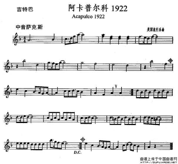 阿卡普尔科 1922萨克斯谱(Acapulco 1922),阿卡普尔科 1922萨克斯简谱"