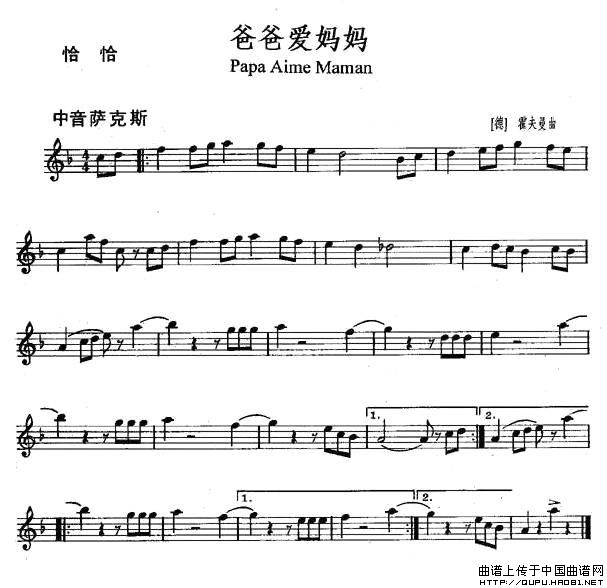 爸爸爱妈妈萨克斯谱(Papa Aime Maman),爸爸爱妈妈萨克斯简谱"