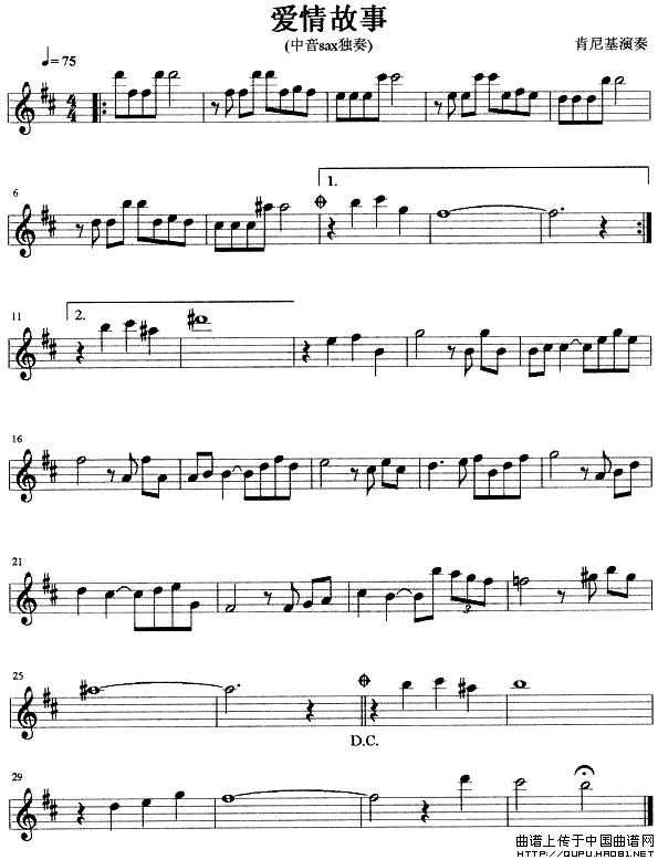 爱情故事萨克斯谱(中音sax独奏),爱情故事萨克斯简谱"