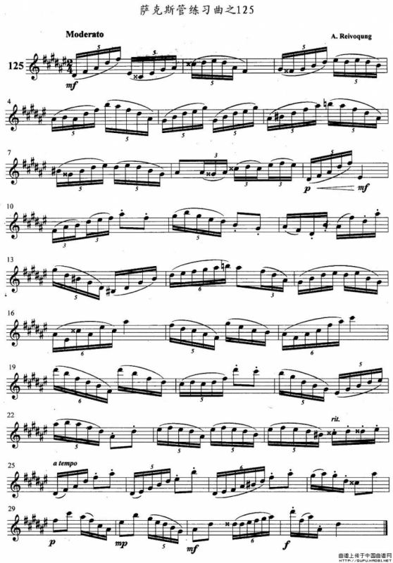 萨克斯管练习曲萨克斯谱(121—125),萨克斯管练习曲萨克斯简谱"