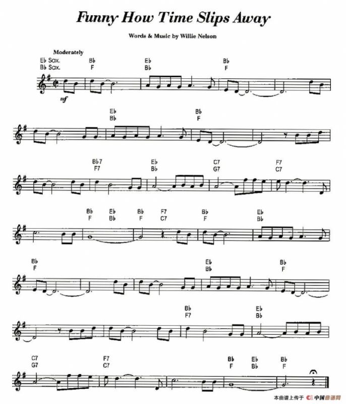 Funny How Time Slips Away萨克斯谱,Funny How Time Slips Away萨克斯简谱"