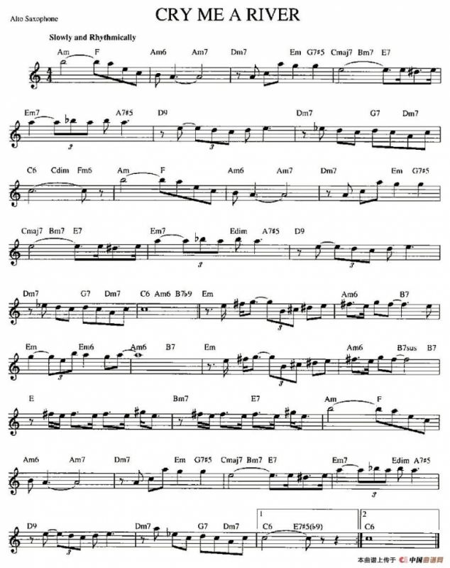 CRY ME A RIVER萨克斯谱,CRY ME A RIVER萨克斯简谱"