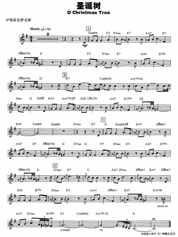 圣诞树萨克斯谱,圣诞树萨克斯简谱"