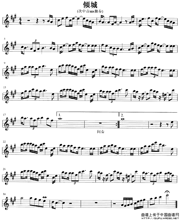 我只在乎你萨克斯谱,我只在乎你萨克斯简谱"