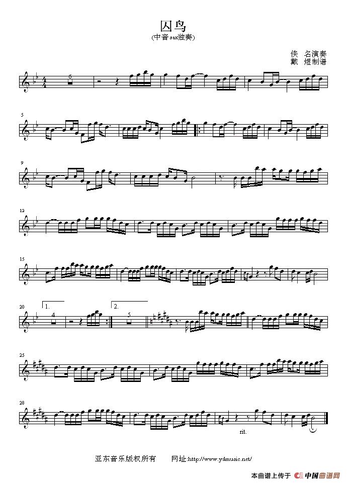囚鸟萨克斯谱,囚鸟萨克斯简谱"