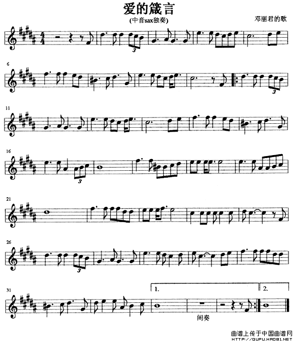 爱的箴言萨克斯谱,爱的箴言萨克斯简谱"