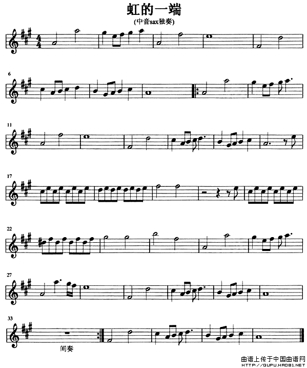 虹的一端萨克斯谱,虹的一端萨克斯简谱"