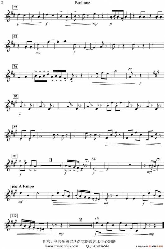 《窗花舞》四重奏萨克斯谱(baryton—上低音萨克斯分谱),《窗花舞》四重奏萨克斯简谱"