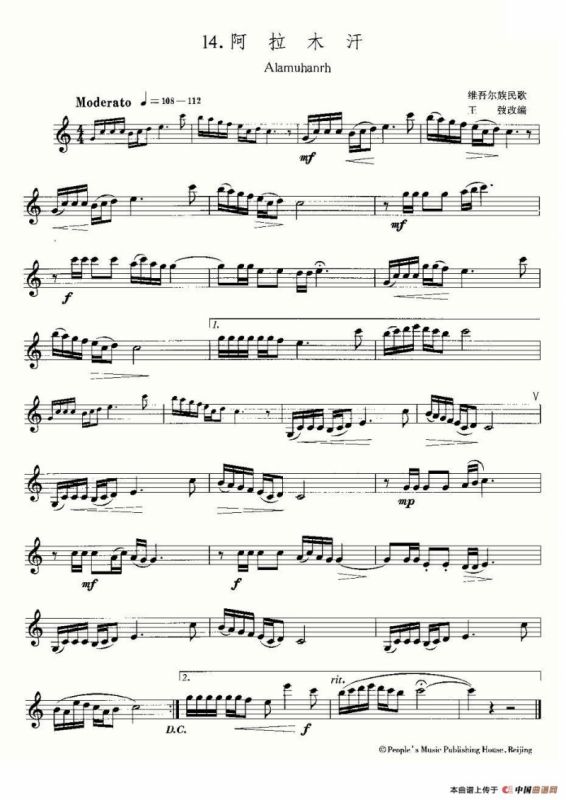 22首中国民歌乐谱之14、阿拉木汗萨克斯谱,22首中国民歌乐谱之14、阿拉木汗萨克斯简谱"