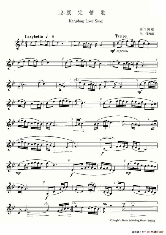 22首中国民歌乐谱之12、康定情歌萨克斯谱,22首中国民歌乐谱之12、康定情歌萨克斯简谱"