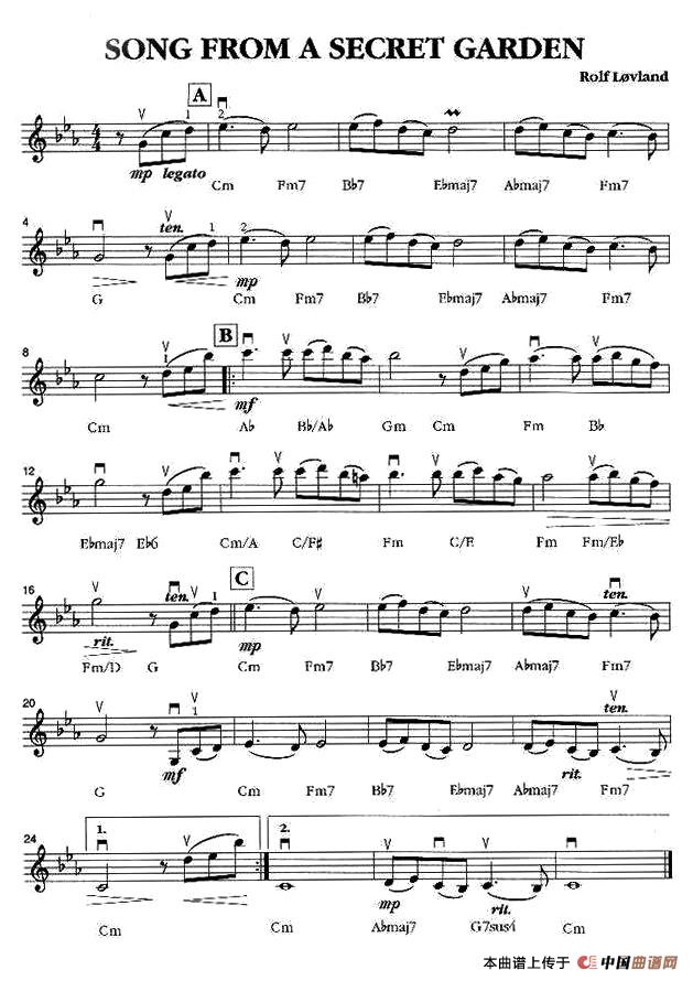 SONG FROM A SECRET GARDEN萨克斯谱(神秘花园),SONG FROM A SECRET GARDEN萨克斯简谱"