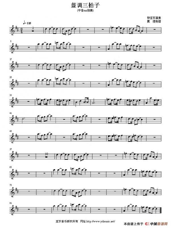蓝调三拍子萨克斯谱,蓝调三拍子萨克斯简谱"