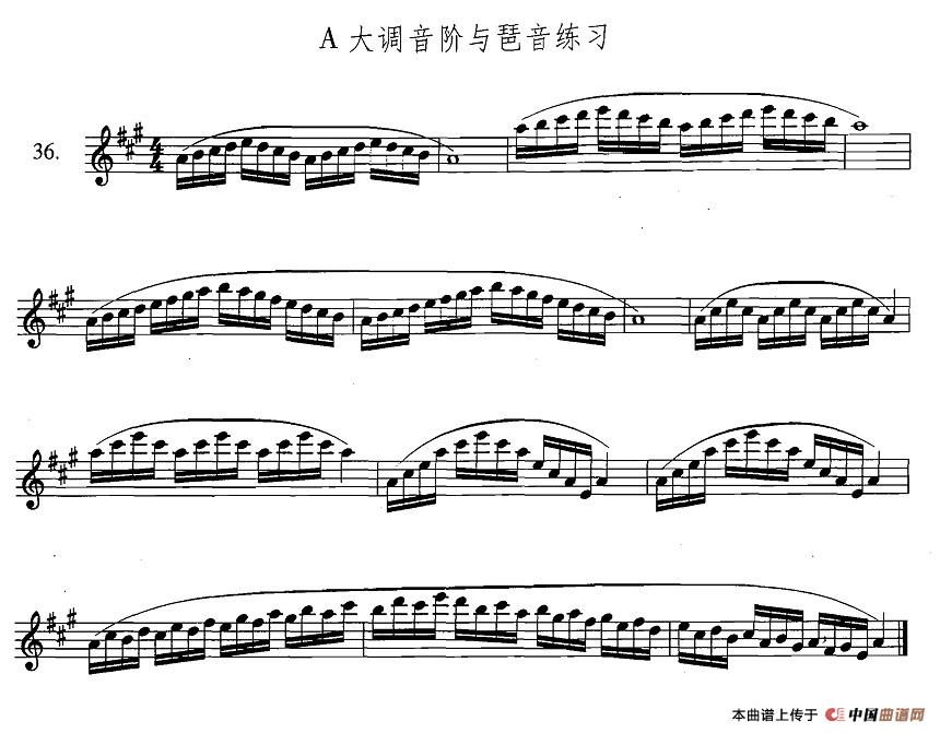 萨克斯练习曲合集萨克斯谱(3—36)A大调音阶与琶音练习萨克斯谱,萨克斯练习曲合集(3—36)A大调音阶与琶音练习萨克斯简谱"