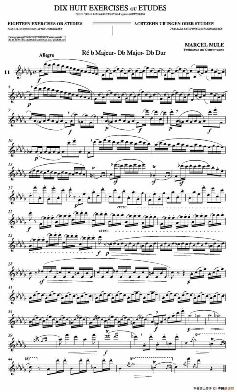 18 Exercicios ou Estudos de Marcel Mule - Enelruy Lira萨克斯谱(马瑟·穆勒18首练习曲—11),18 Exercicios ou Estudos"