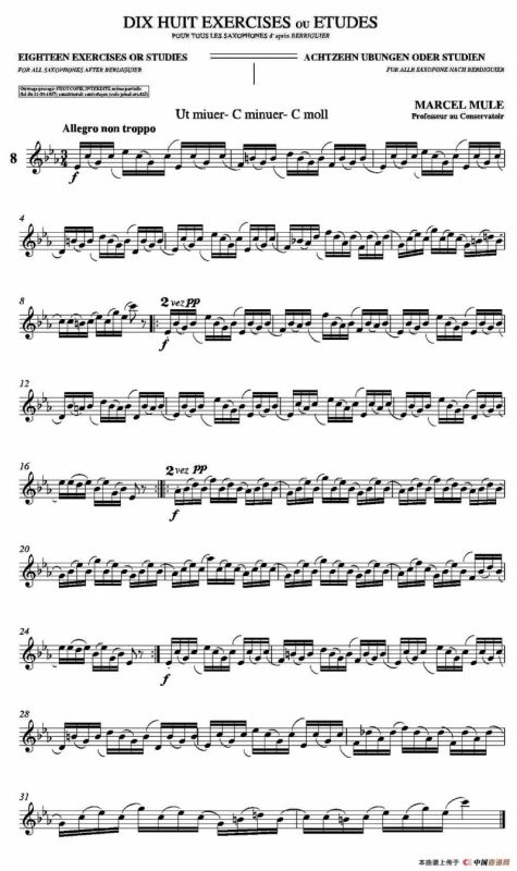 18 Exercicios ou Estudos de Marcel Mule - Enelruy Lira萨克斯谱(马瑟·穆勒18首练习曲—8),18 Exercicios ou Estudos d"