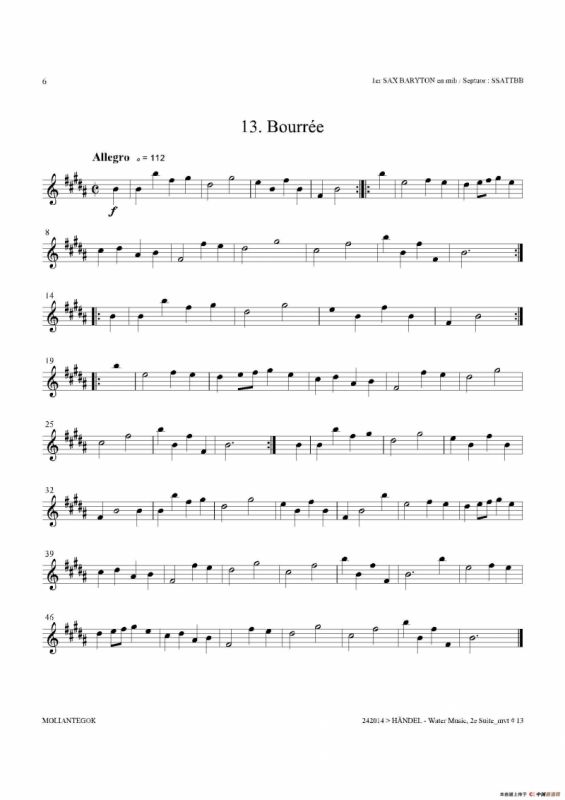 Water Music萨克斯谱(HWV.348 No.1)(第一上低音萨克斯),Water Music(HWV.348 No.1)萨克斯简谱"